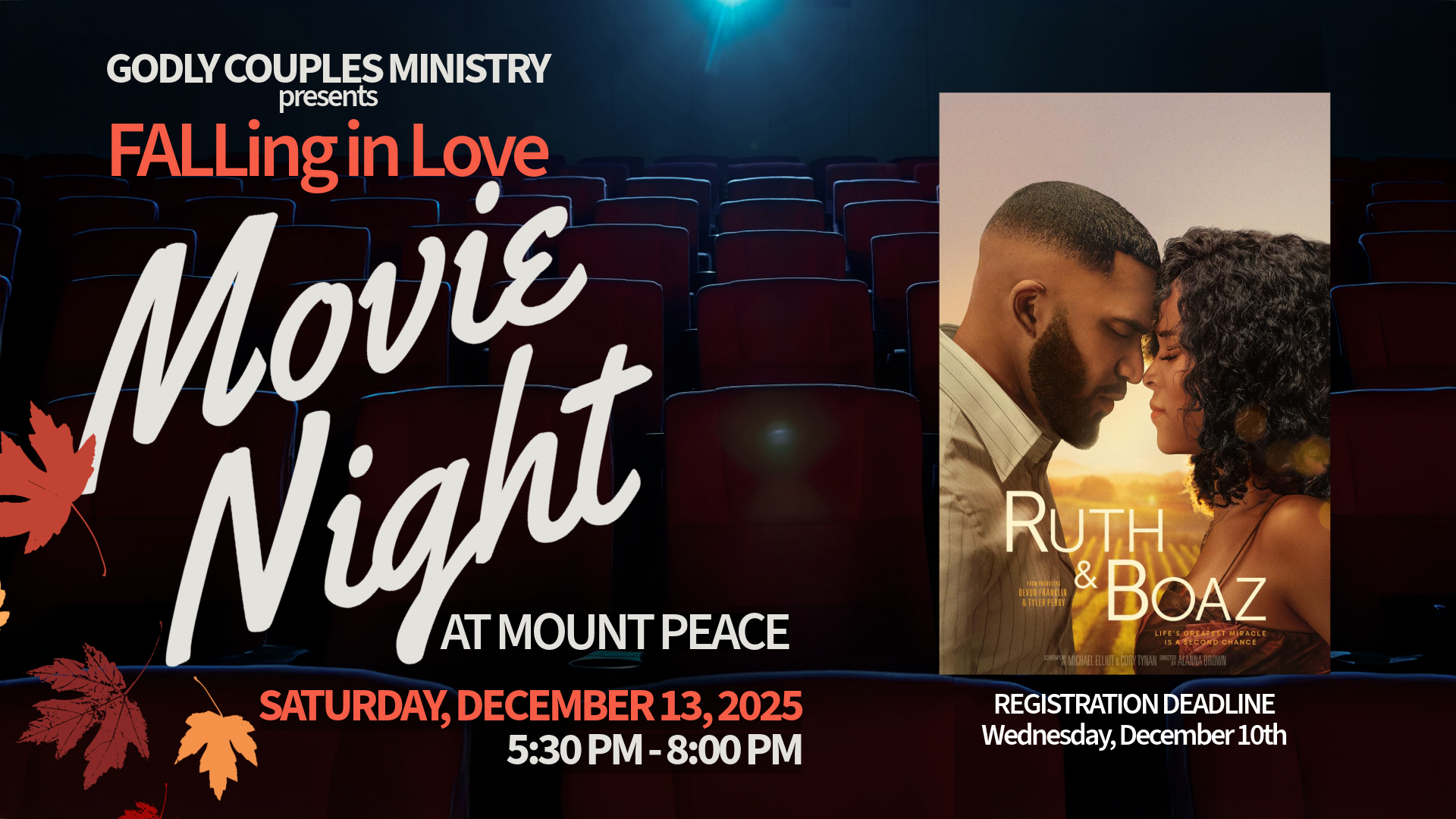 Godly Couples Ministry presents FALLing in Love Movie Night at Mount Peace on Saturday, December 13th from 5:30pm- 8:00pm.